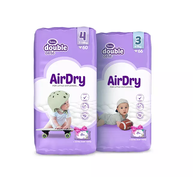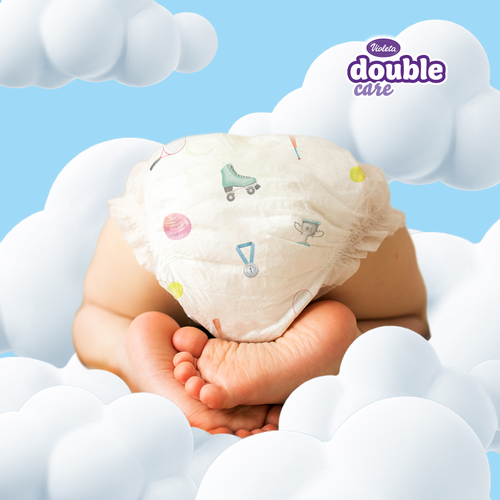 Violeta Double Care is a brand created with twice care for small consumers with large capacities! Each product in the range is designed and manufactured with special care, detailed analysis, laboratory testing from experts in diapering, runny noses, and cheerful little heads!
