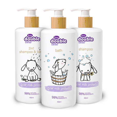 A perfectly clean and fragrant baby – from now on it’s so easy and super fun with Violeta Double Care baby cosmetics! Shampoo and bath and 2in1 are enriched with goat’s milk proteins and are safe to use from day one. The “tear-free” formula makes bath time more pleasant for small babies, and for naughty toddlers it becomes real bubbly fun without irritation. Apply a small amount to the scalp, stomach, legs and toes, add some tickling and let the magic begin!